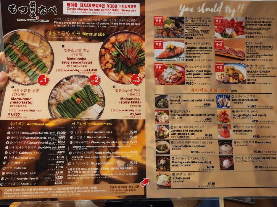 - 자릿세 1인당 380엔(디너 시간만)