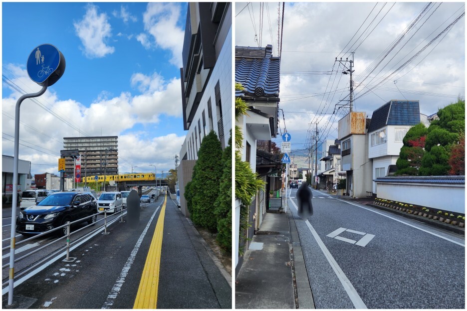자전거코스로는 메인거리 마메다구치(옛 거리), 쿠마마치(강변쪽) 두 갈래로 보통 나눠진다.